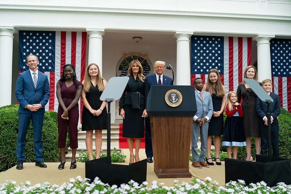 President Donald J. Trump and First Lady Melania Trump pose with Judge Amy Coney Barrett and family members at the White House. Official White House Photo by Andrea Hanks.